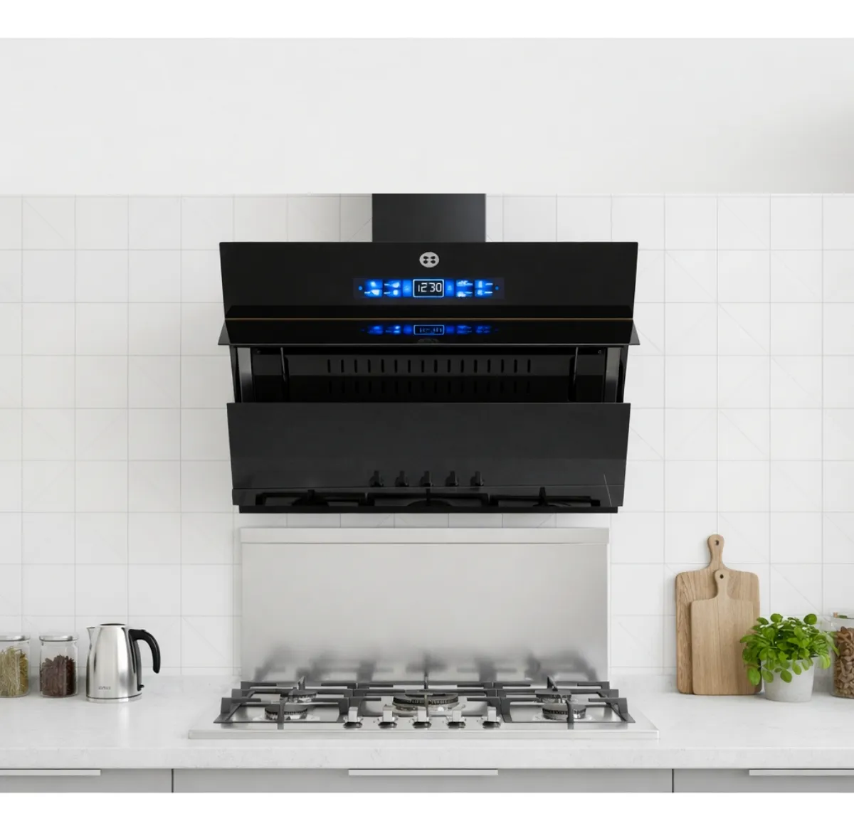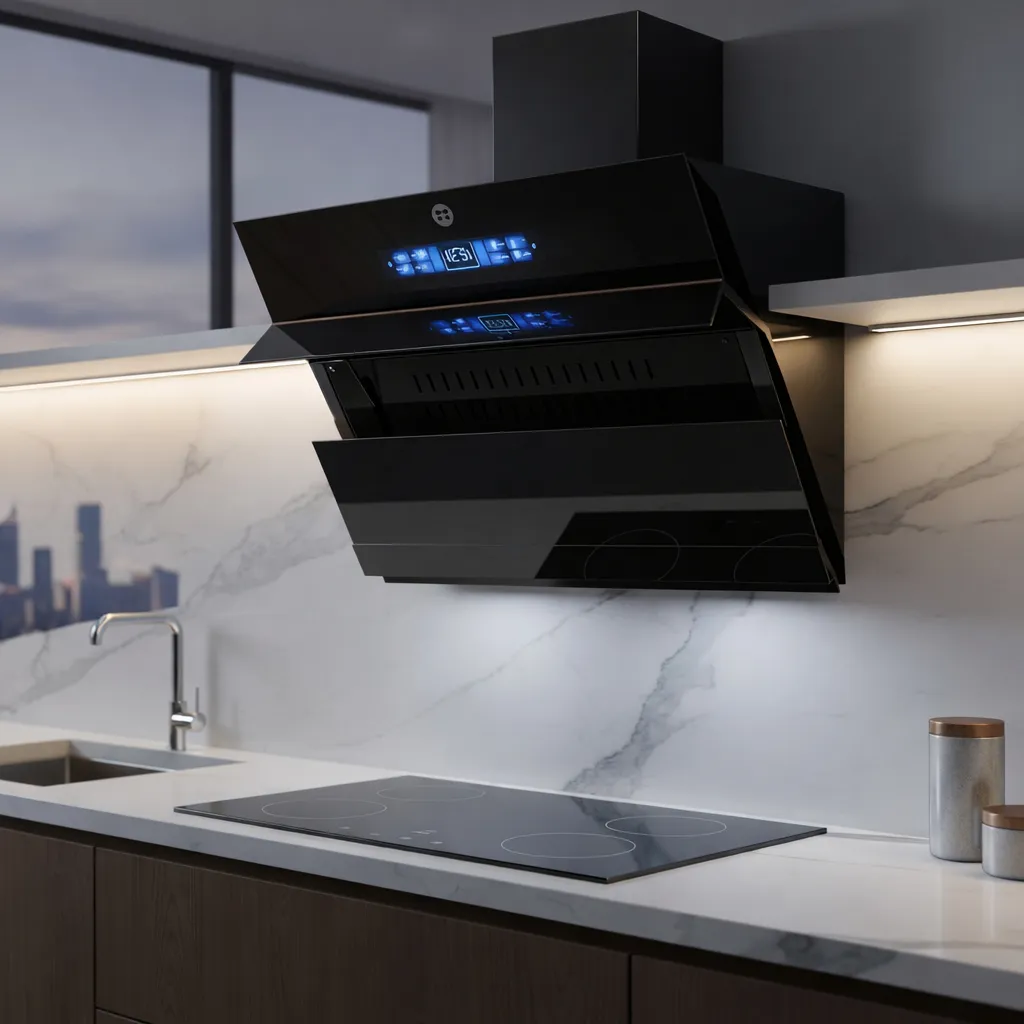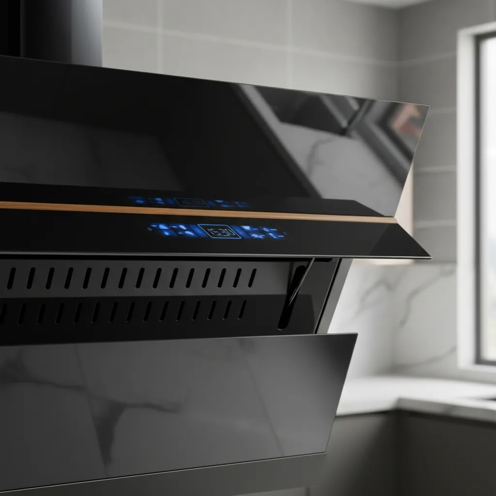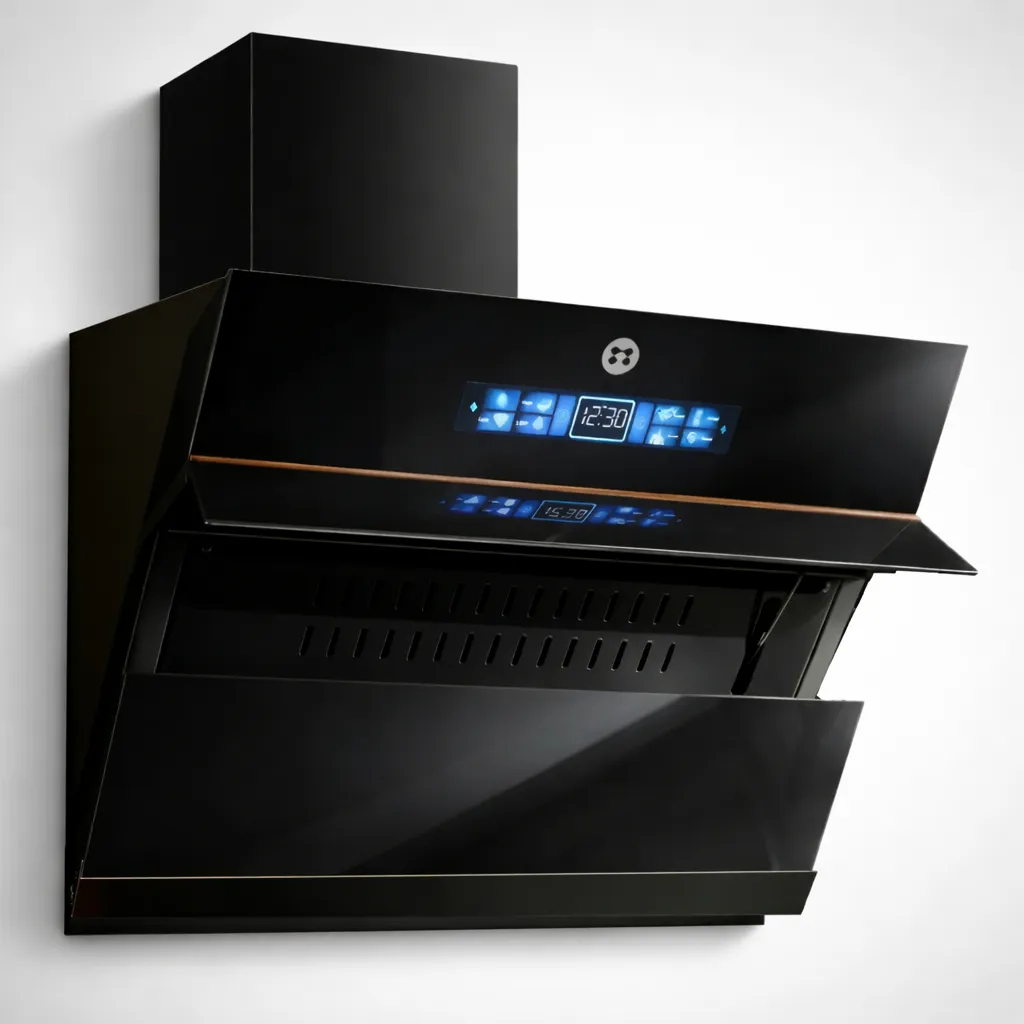 Etiquetas: campana con certificación CE, campana con sensor, campana de acero inoxidable, campana de cocina, campana de pared, campana extractora inteligente, campana moderna, campana negra, campana para cocina comercial, campana para cocina doméstica, campana silenciosa, campana táctil, control por voz, extractor de cocina, motor de cobre