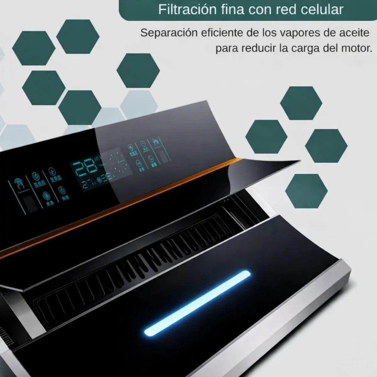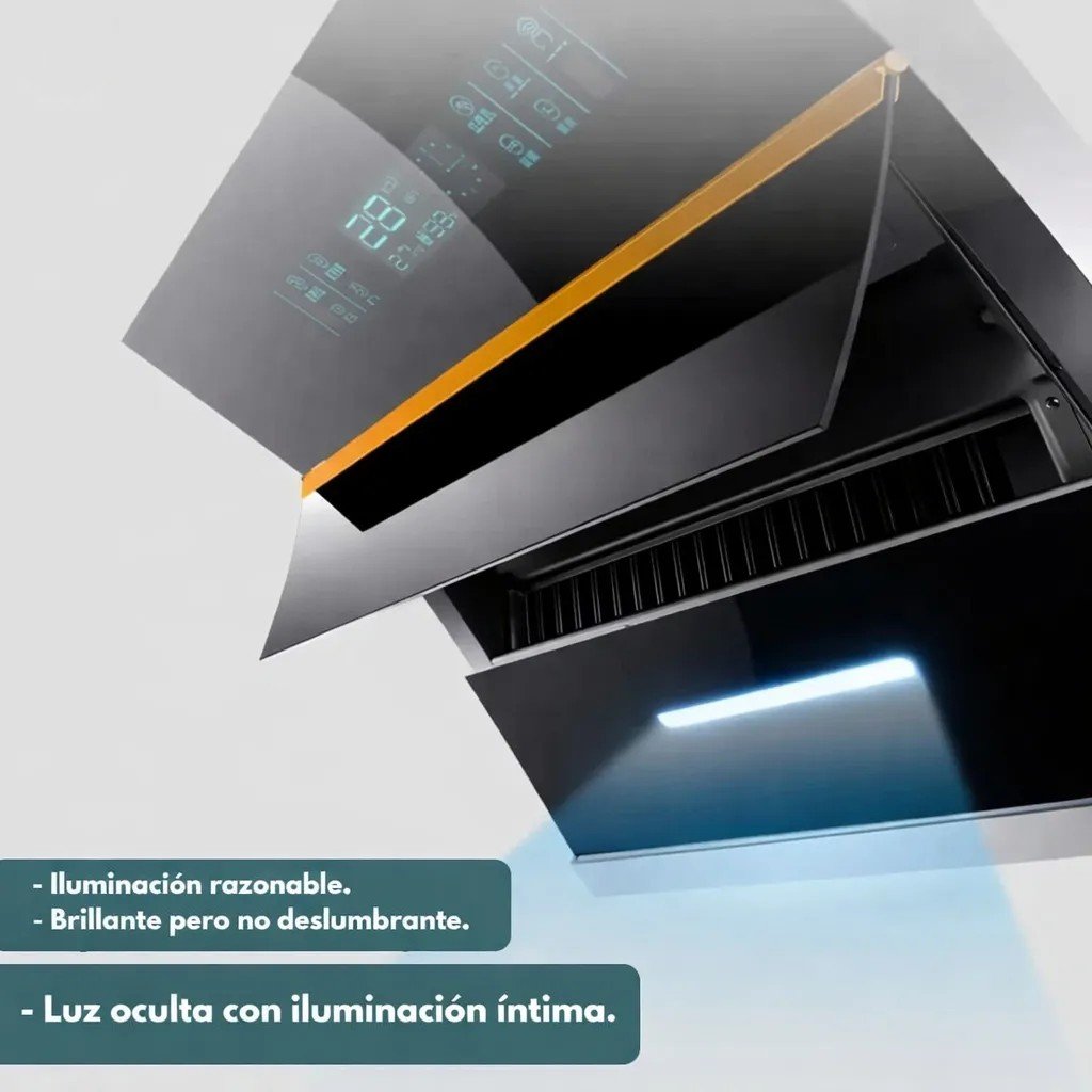 La campana extractora inteligente de cocina es la solución perfecta para quienes buscan eficiencia, diseño moderno y alto rendimiento en su cocina. Fabricada en acero inoxidable con acabado en color negro, esta campana combina tecnología avanzada con estética elegante, ideal para cocinas domésticas y comerciales.