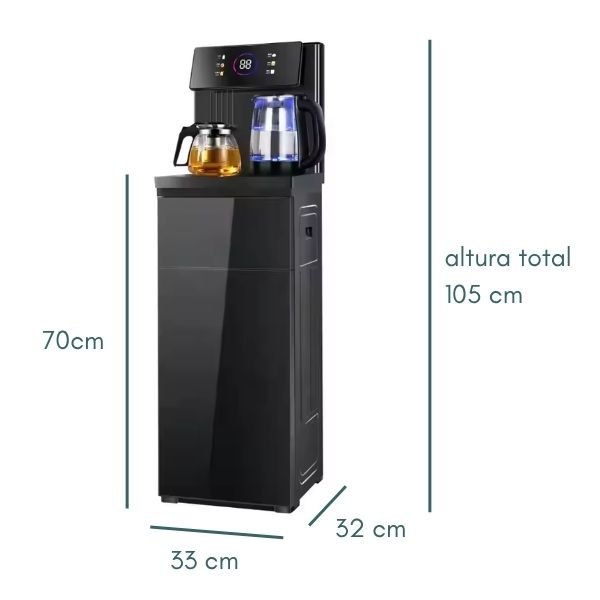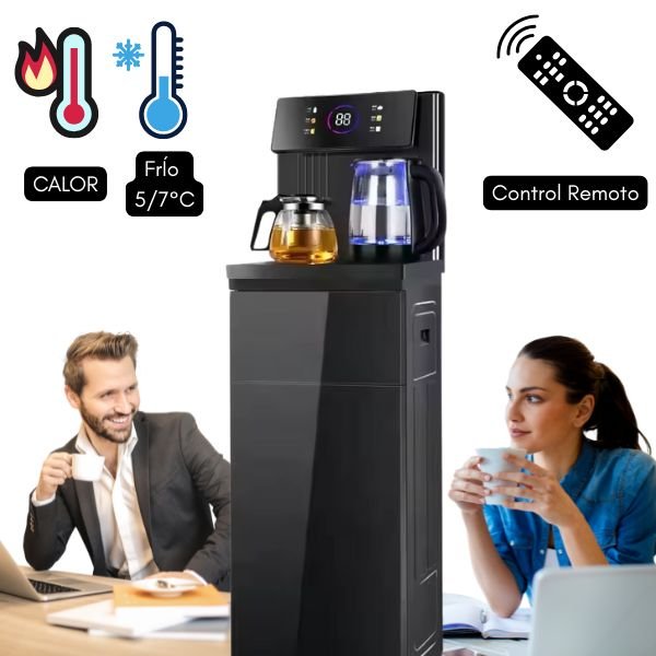 Gracias a su sistema de refrigeración y calefacción por compresor, obtenés agua fría entre 3°C y 5°C y agua caliente entre 85°C y 95°C, ideal para preparar infusiones, mate o café al instante. Su diseño moderno y elegante se adapta perfectamente a cualquier ambiente, y su doble espacio de guardado lo convierte en una solución práctica y funcional.