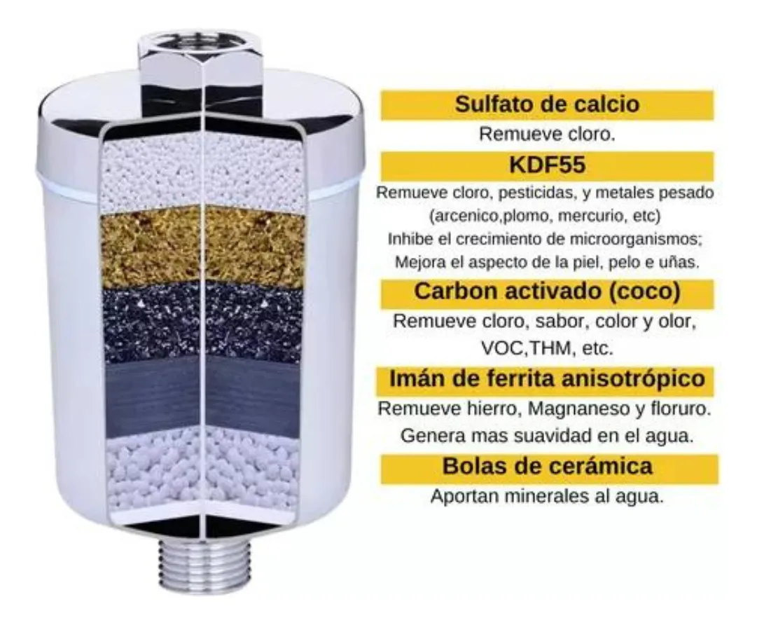 Etiquetas: agua suave ducha, ducha sin cloro, filtro antisarro, filtro baño, filtro con imán ferrita, filtro ducha 6 etapas, filtro para alergias, filtro para piel sensible, purificador de agua para ducha, repuesto filtro ducha